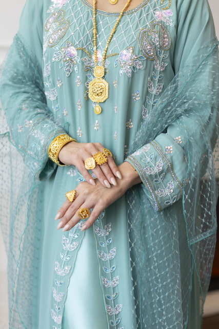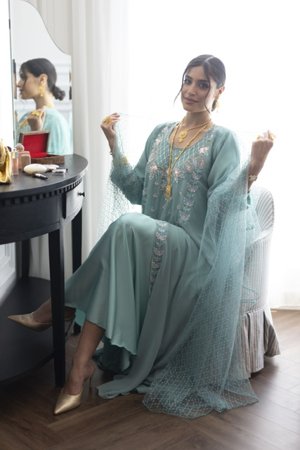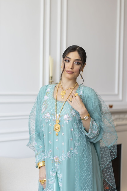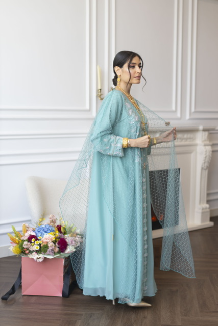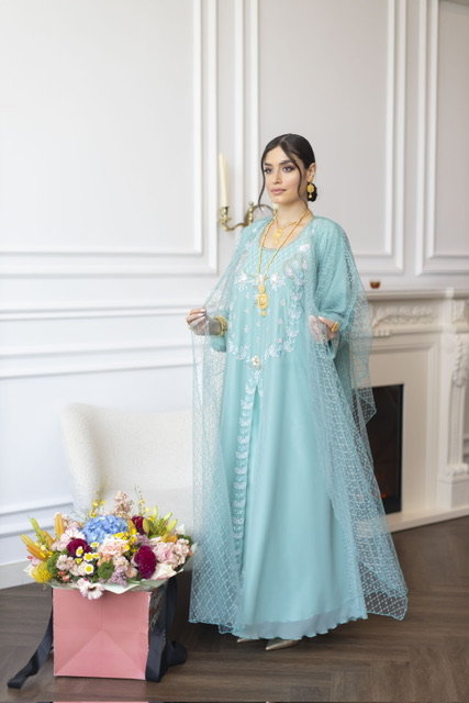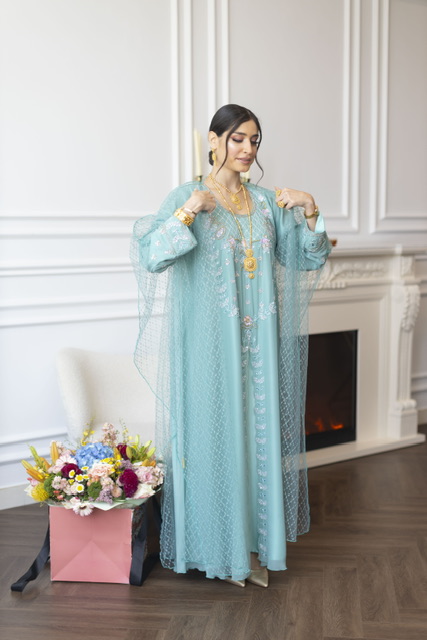 Dress+Scarf دريس+شيله (عليها ترتر منثر )